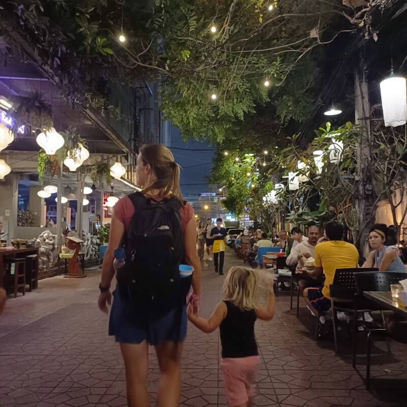 Die bijnaam is in onbruik geraakt sinds de stad bakermat is geworden van de backpackcultuur, genderfluïditeit en de klamme pingpongbal. Ik was er niet eerder geweest en had besloten om alles (niet écht alles, maar veel) over mij heen te laten komen, wat heeft geleid tot een vijf dagen durende zintuiglijke aanslag die ik ternauwernood heb overleefd. Het was al wennen toen we uit de taxi stapten. Na een rit in de airconditioning over vijfbaanswegen langs glanzende hoogbouw liepen we nu in een smalle straat aan de oever van de Menam. Zeulend met tassen en rugzakken vloog de hitte ons direct aan, ondanks de schaduw van de overhangende bedrading. Scooters en ondefinieerbare vervoermiddelen passeren links en rechts, vlagen rioollucht vermengen zich met de geur van verhitte oestersaus en pittige curry. We vinden ons hotel, gooien de spullen in de kamer en zijn na een duik in het zwembad klaar om ons onder te dompelen in deze nieuwe wereld.