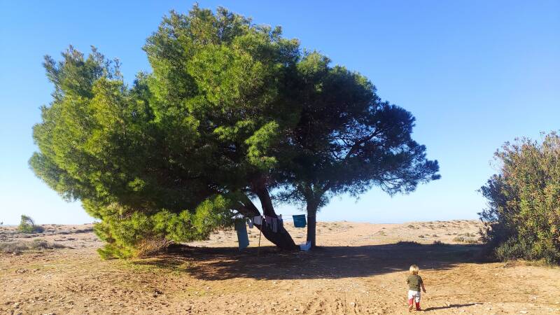 Maar goed. Sommigen mensen wórden ook daadwerkelijk tekort gedaan, waar je ook woont. En met hetzelfde gemak zou je kunnen aandragen dat zij hier, in plaats van te foeteren en ploeteren binnen een systeem dat ze niet bevalt, een paradijs aan het creëren zijn. Want het ís ook schitterend. 's Ochtends word je gewekt door vogels en een ruisende branding. Deuren gaan open, volwassenen staan met gesloten ogen en een koffie in hun hand, als reptielen in de ochtendzon. Kinderen voetballen, krijgen les of schommelen onder de bomen. 's Middags worden er pizza's gebakken in zelfgemaakte kleiovens terwijl er biertjes worden uitgedeeld. Speelgoed is gemeengoed, net als de kinderen, die van niemand en iedereen tegelijk zijn. Ze zwemmen in zee, bouwen kastelen in de duinen en klimmen in de bomen. Griekse boeren rijden tussen de bewoners door met kalamata's, vers brood en olijfolie. Wanneer de zon onder gaat vermengt een briesje de lucht van dennenbos met die van de kampvuren, er klinkt gelach en een gitaar. Een vrijplaats zonder stress en verplichtingen.