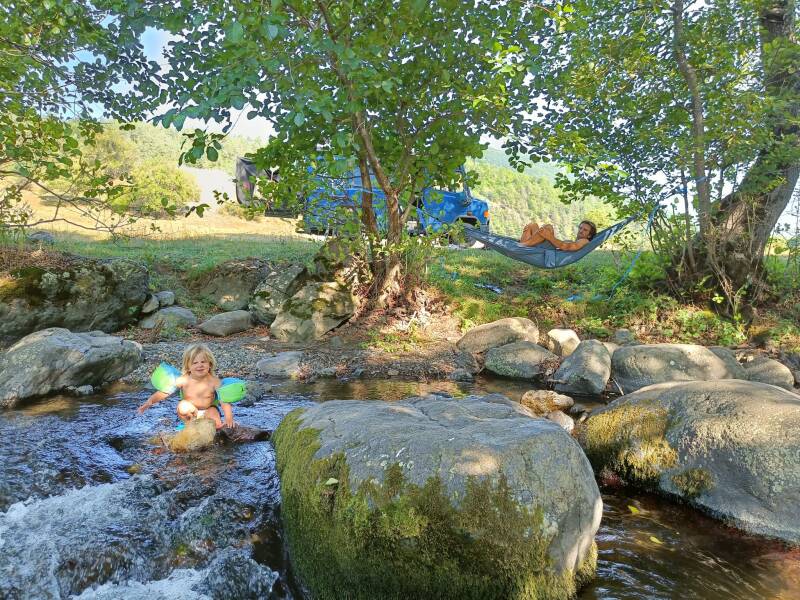 Die hulp was meer dan welkom. Het is nu eenmaal zo dat alles tijdens zo'n reis als deze het zwaar te verduren heeft en continu aandacht behoeft. Ik heb nog niet eerder met zo'n grote regelmaat slangenklemmen, kniptangetjes en kitspuiten in mijn handen gehad als afgelopen jaar, en hoewel de handigheid toeneemt is extra kennis niet af te slaan. Daarnaast is het sneller en gezelliger, dus voor ik het wist lag William onder de bus. Het zou een relatief eenvoudige klus moeten zijn, dat ik eigenlijk al had willen uitbesteden aan een garage want ik weet hoe dat gaat: het blijkt toch veel moeilijker dan gedacht en uiteindelijk maak je het nog kapotter dan het al was. Alles zat na dertig jaar roest, modder en tectyl inderdaad muurvast, maar William bleek olympiër op het onderdeel momentsleutelen. Verder had ik als hulplijn via de app nog een technisch orakel uit Spanje, naar Jamie had ik geen omkijken want die was in de gloria door de aandacht van Febe en zijn moeder, en naast ons stond een Duitser. Dat laatste is ook niet te onderschatten. Duitsers hebben zó veel materiaal en gereedschap bij zich dat ze bij panne of diefstal ter plekke een volledig nieuwe auto kunnen assembleren.